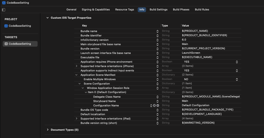 Info.plist - Configuration Name 필드 삭제