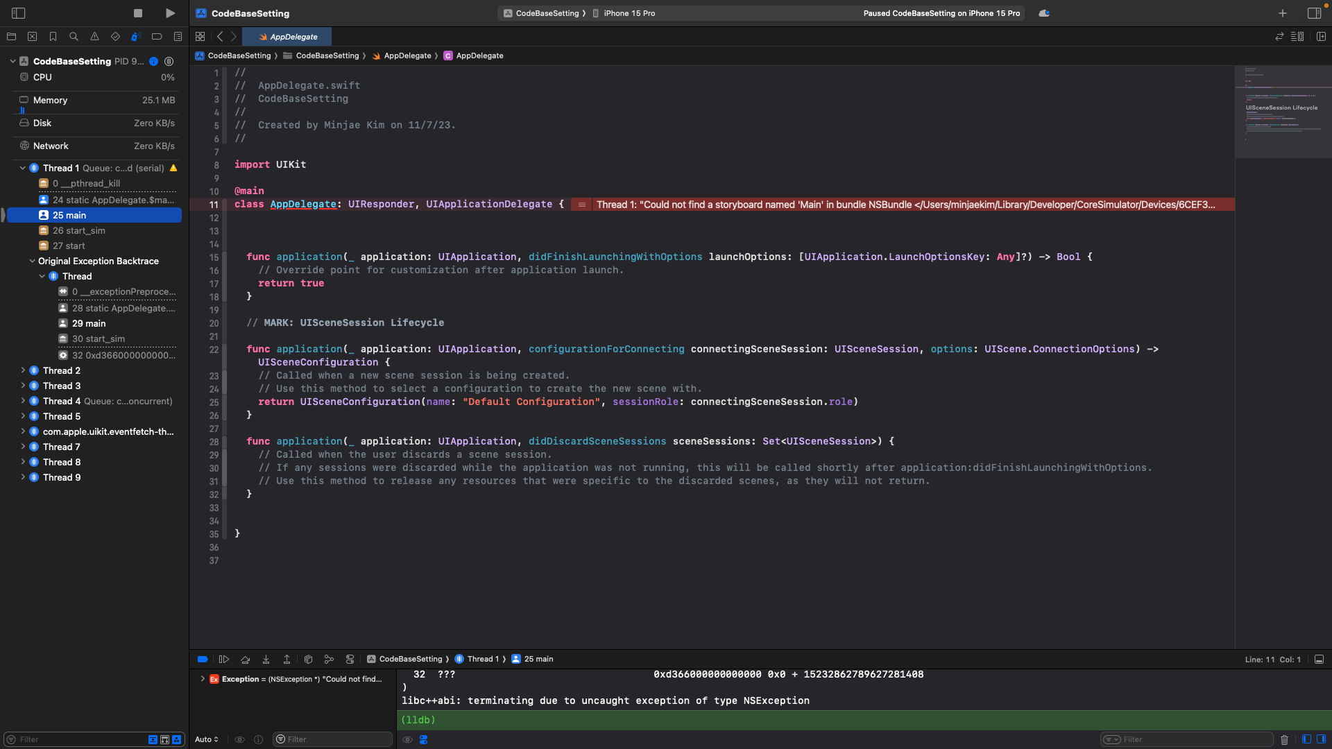Could not find a storyboard named 'Main' in bundle NSBundle 어쩌구