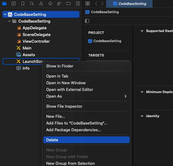 File Navigator - main.storyboard 파일 삭제